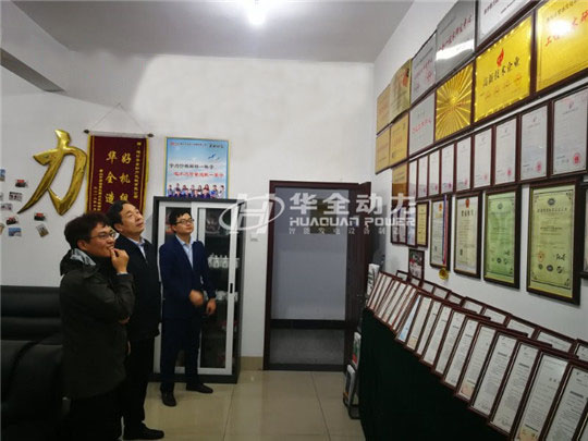4月26日,山東省電力企業協會徐會長蒞臨華全動力參觀考察,華全總經理趙立增熱情接待并陪同考察。